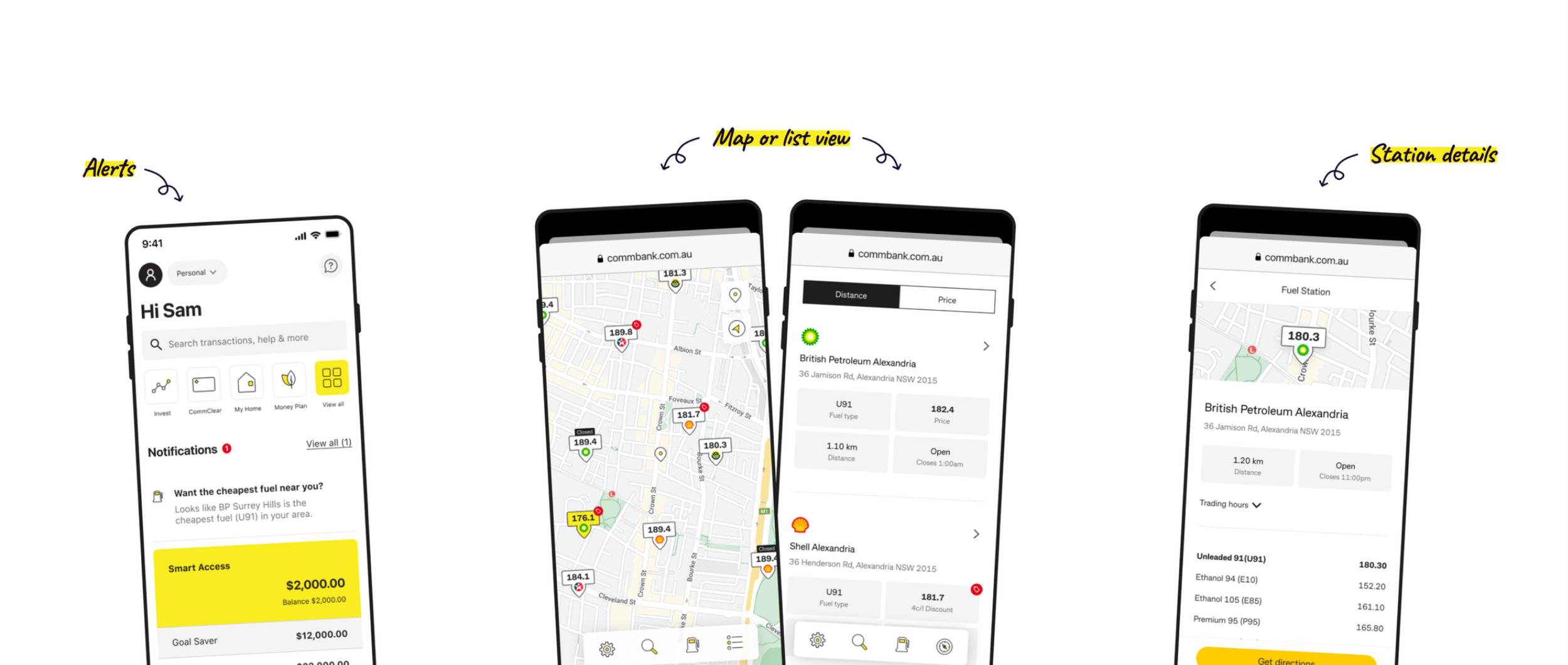 With desirability validated, we designed and built a production pilot inside the CommBank app that included predictive alerts, a fuel station map and price comparisons. We then released it to 250,000 pre-selected customers over six months.